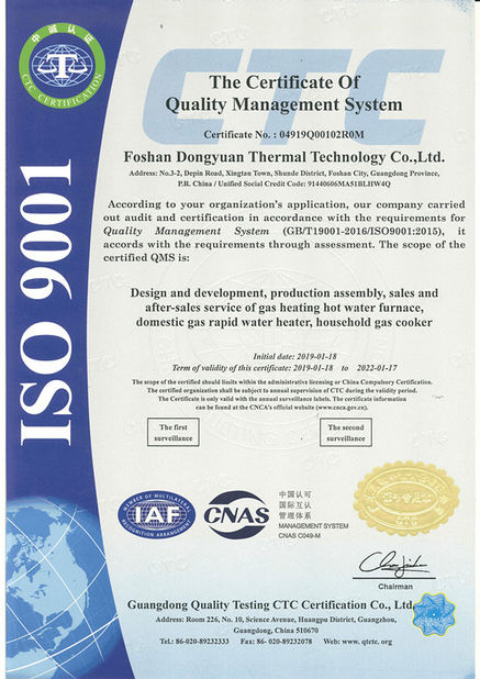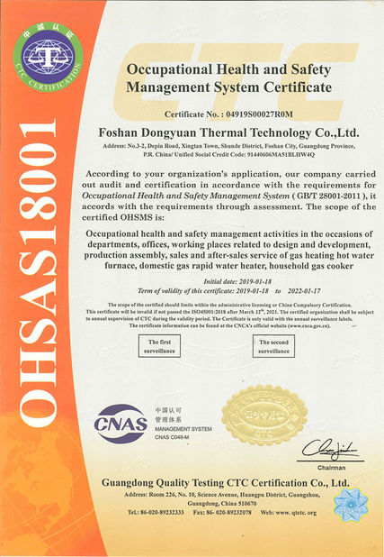 El éxito de DONGYUAN para obtener los certificados ISO9001, ISO14001 y OHSAS18001, nuestras calderas y el calentador de agua se ajusta a las peticiones del certificado de CU-TR y el estándar europeo, les hace venta caliente adentro por todo el mundo, especialmente en la Rusia, el Irán, la Azerbaijan, el Uzbekistán, el Israel y el otro mercado europeo y el mercado de Southest Asia.